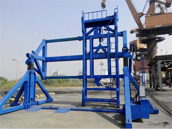 三.該集裝箱翻轉(zhuǎn)機(jī)在平整,經(jīng)過硬化的地面上使用,適用糧庫(kù)、碼頭等場(chǎng)所。